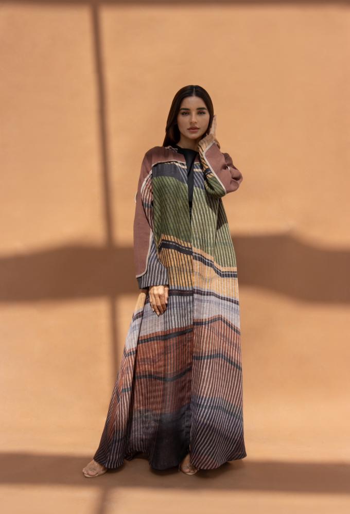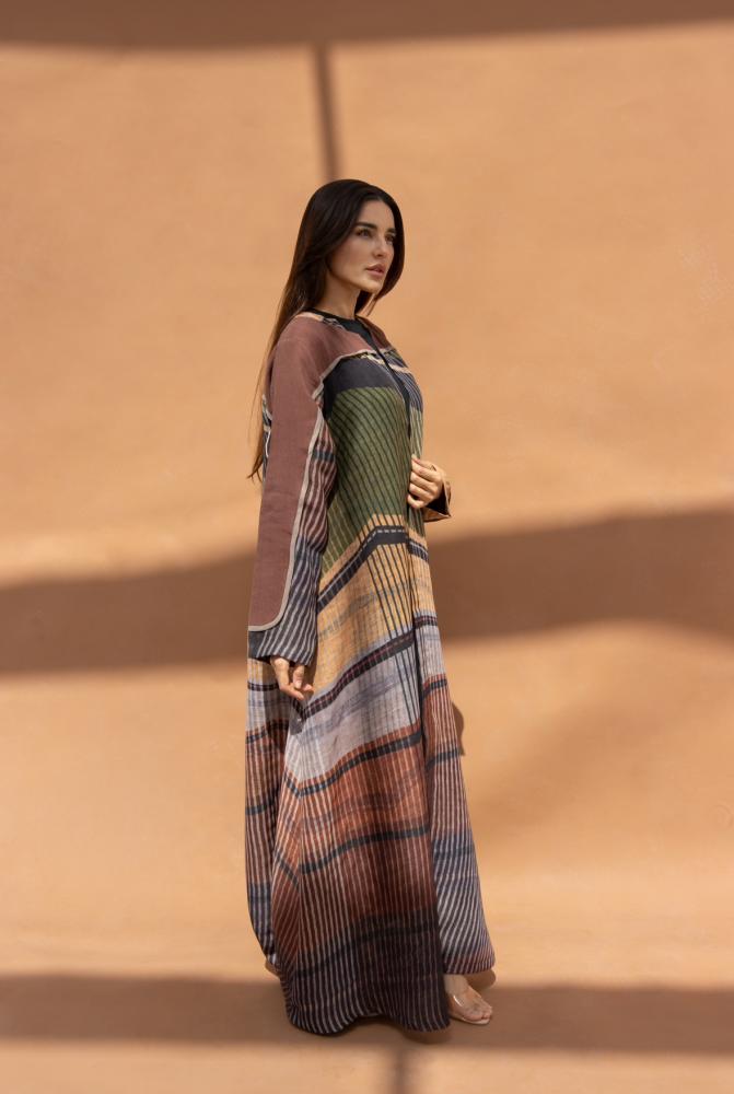 عباية مصنوعة من قماش اللينن الطبيعي الملون، مما يمنحها خفة وتهوية مثالية لفصل الصيف. تتميز بتصميم مريح وعصري، يجمع بين الأناقة والبساطة لتناسب الإطلالات اليومية.