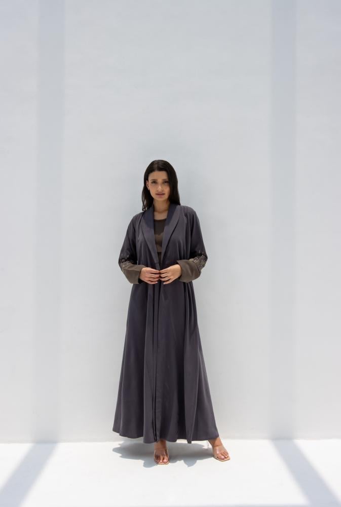 القماش: حرير مغسول بكم مطرز مع فستان داخلي للعبايه و طرحه شيفون طبيعي..