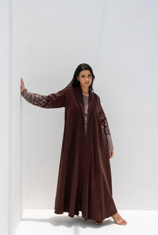 القماش: حرير مغسول بكم مطرز مع فستان داخلي للعبايه و طرحه شيفون طبيعي..