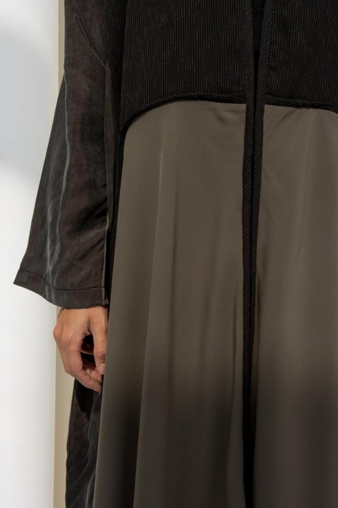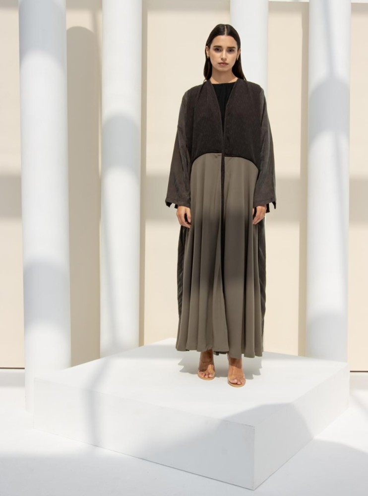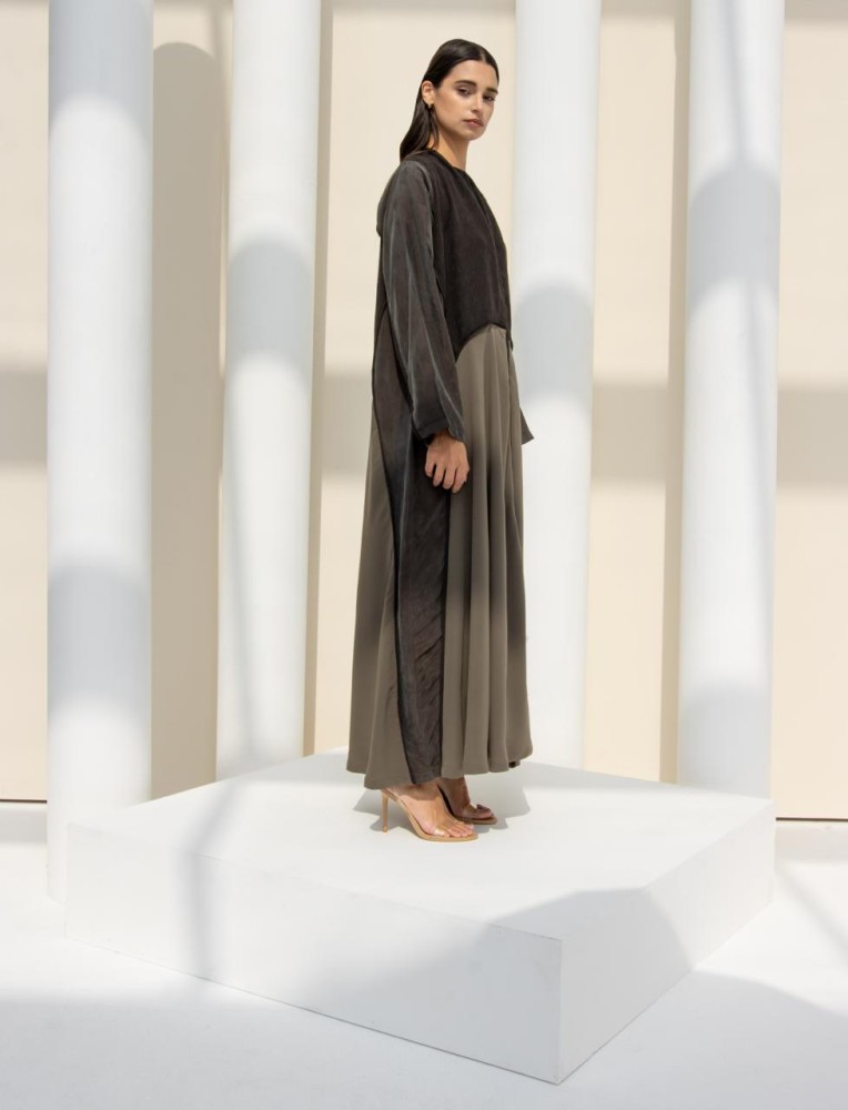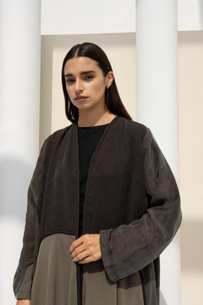 عباية من الحرير المغسول والكريب، مدموجة بثلاثة أقمشة مريحة ومناسبة للاستخدام اليومي في فصل الصيف. تتميز بأناقتها وخفتها وقدرتها على توفير الراحه..