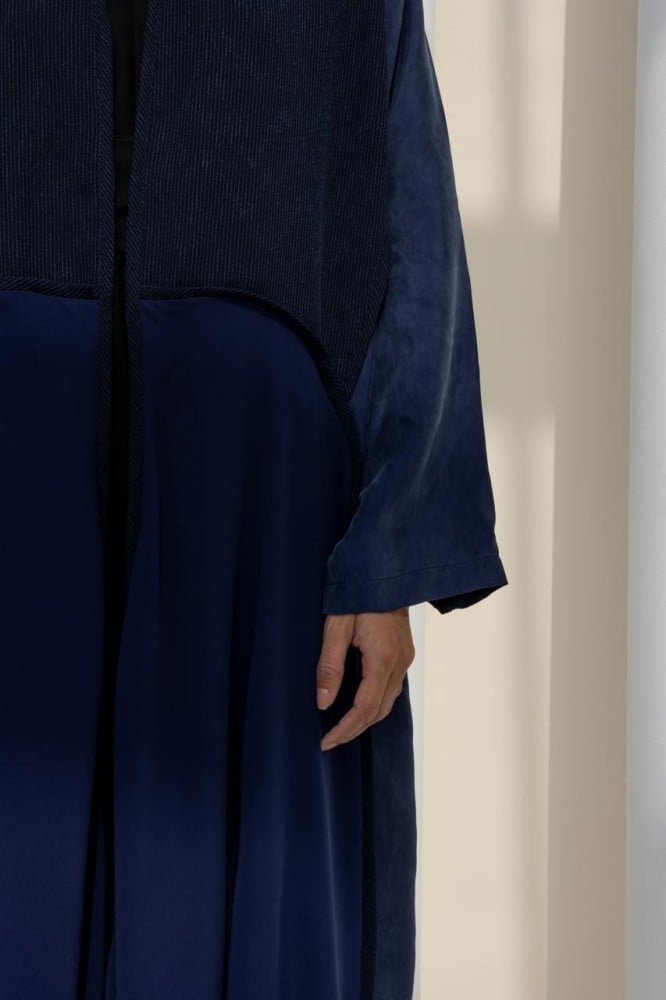 عباية من الحرير المغسول والكريب، مدموجة بثلاثة أقمشة مريحة ومناسبة للاستخدام اليومي في فصل الصيف. تتميز بأناقتها وخفتها وقدرتها على توفير الراحه..