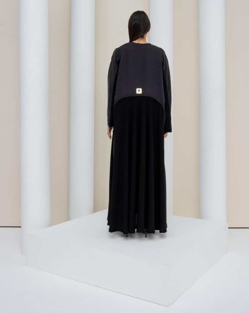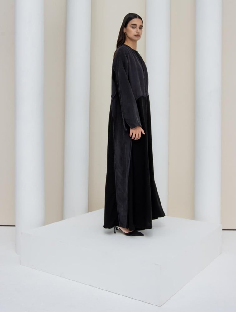 عباية من الحرير المغسول والكريب، مدموجة بثلاثة أقمشة مريحة ومناسبة للاستخدام اليومي في فصل الصيف. تتميز بأناقتها وخفتها وقدرتها على توفير الراحه..