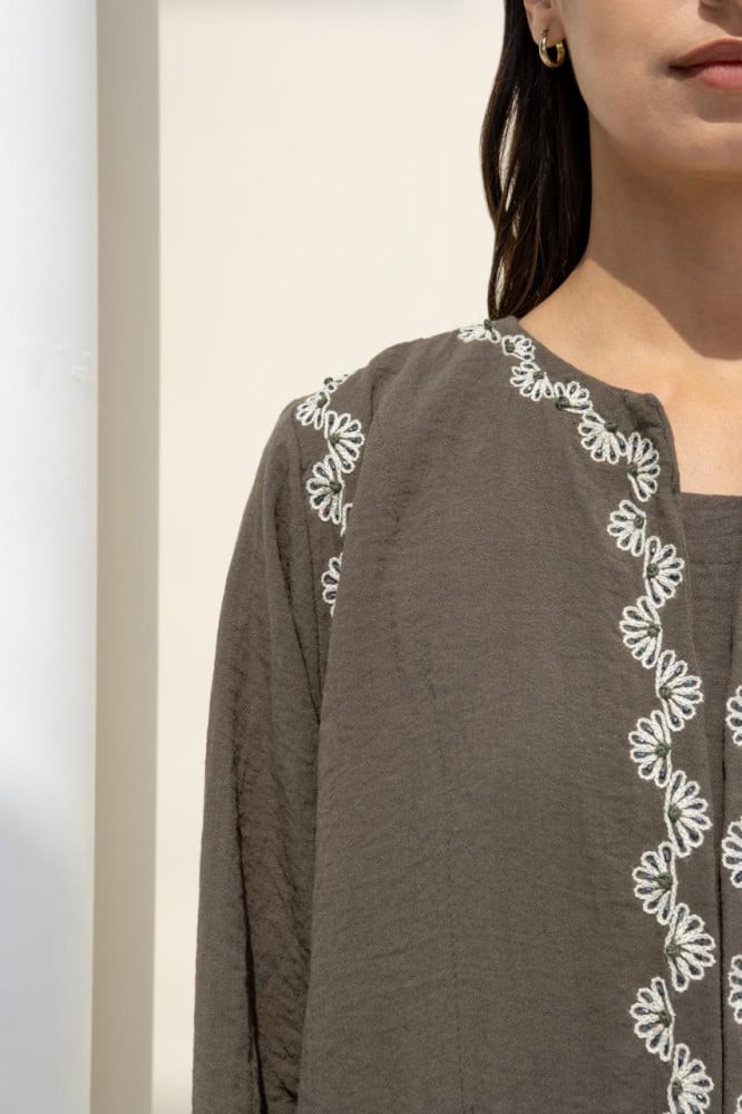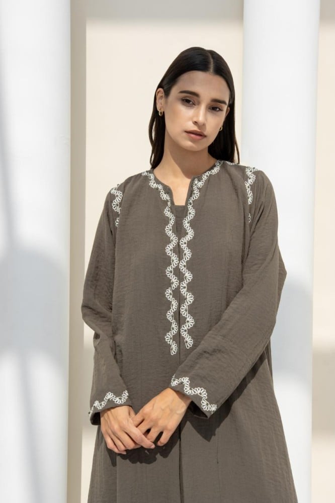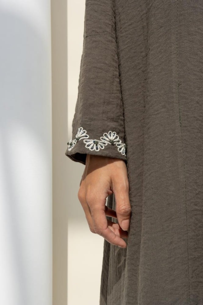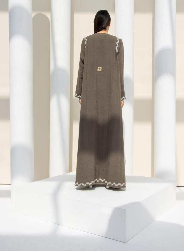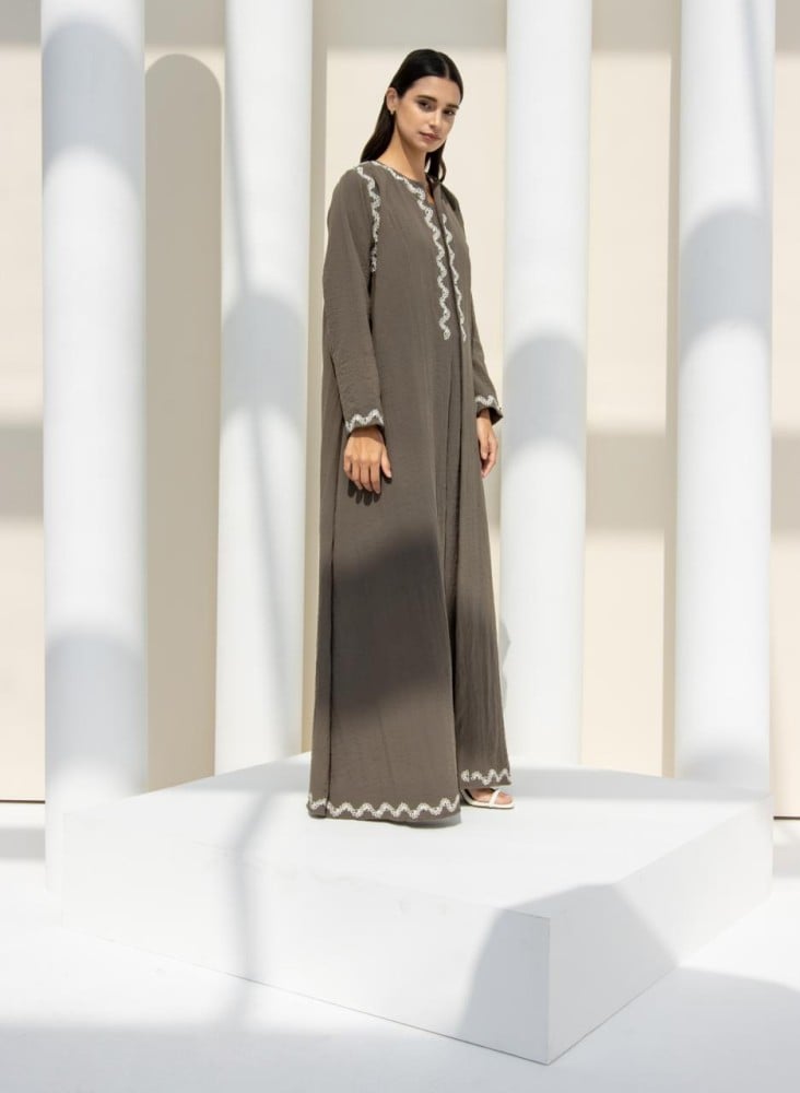 عباية وفستان داخلي مصنوعان من اللينن القطني العملي، مع تطريز يدوي كامل على العباية والطرحة. تصميم أنيق وفريد يجمع بين الجمال والراحة، مما يجعلهما مثاليين لمختلف المناسبات.