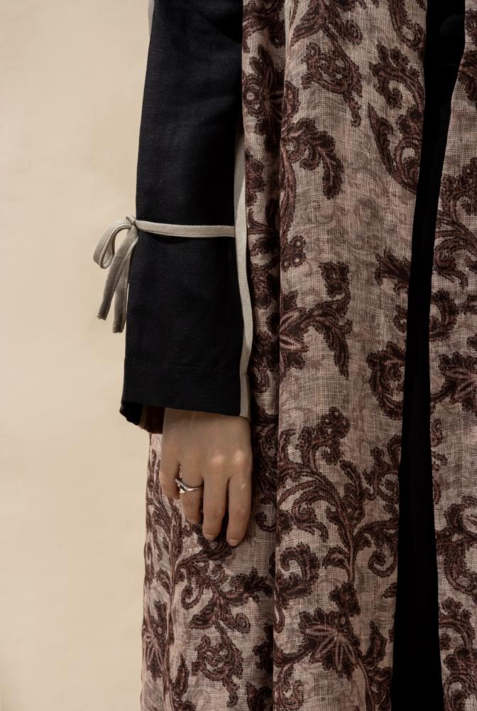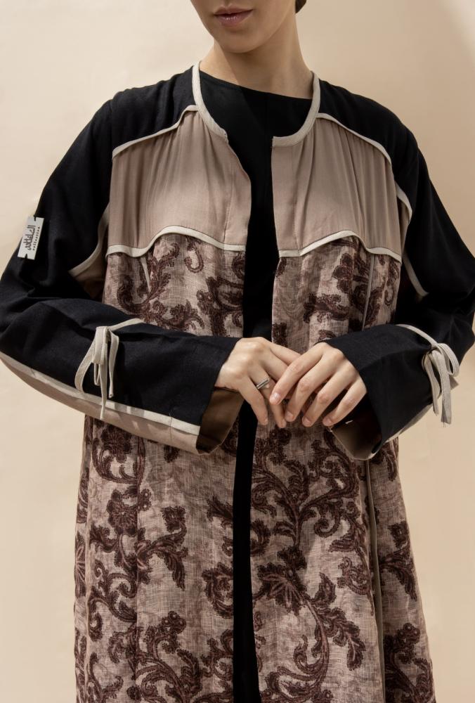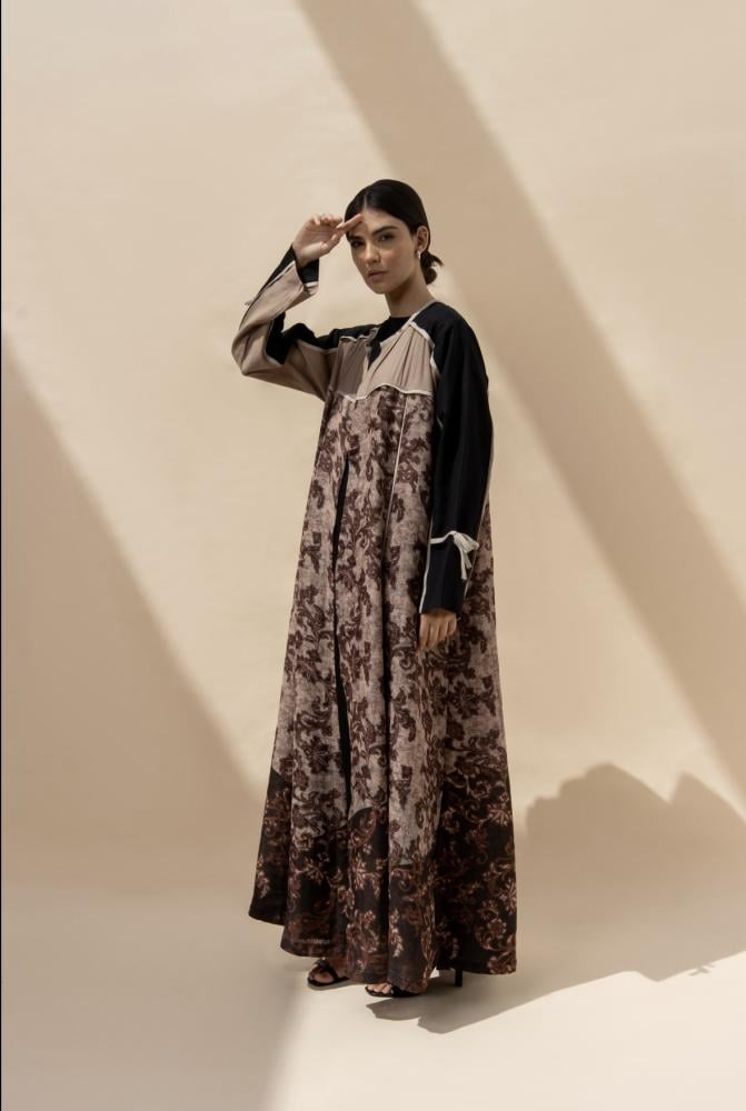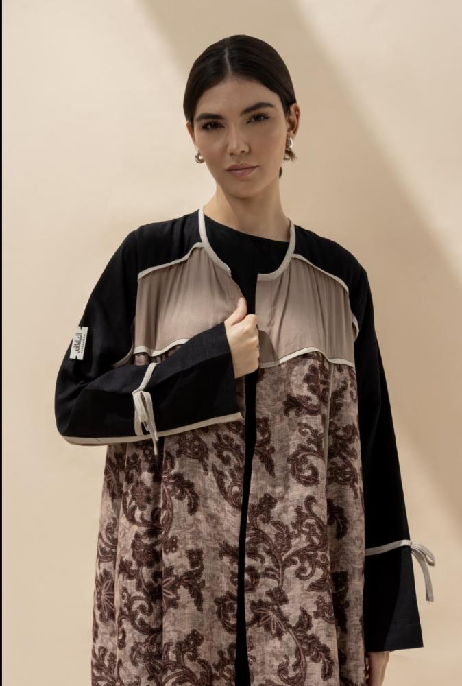 عباية من قماش اللينن الهندي بخامة خفيفة ومريحة، مثالية لأجواء الصيف الحارة. يتميز القماش برسمة جميلة تضيف لمسة فنية ناعمة، وتجمع بين الأناقة والراحة لإطلالة يومية منعشة وعصرية..