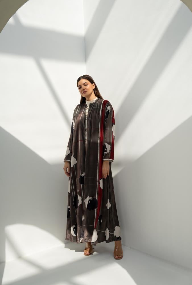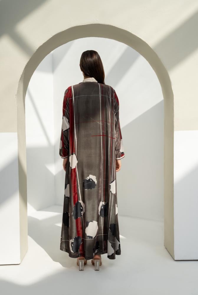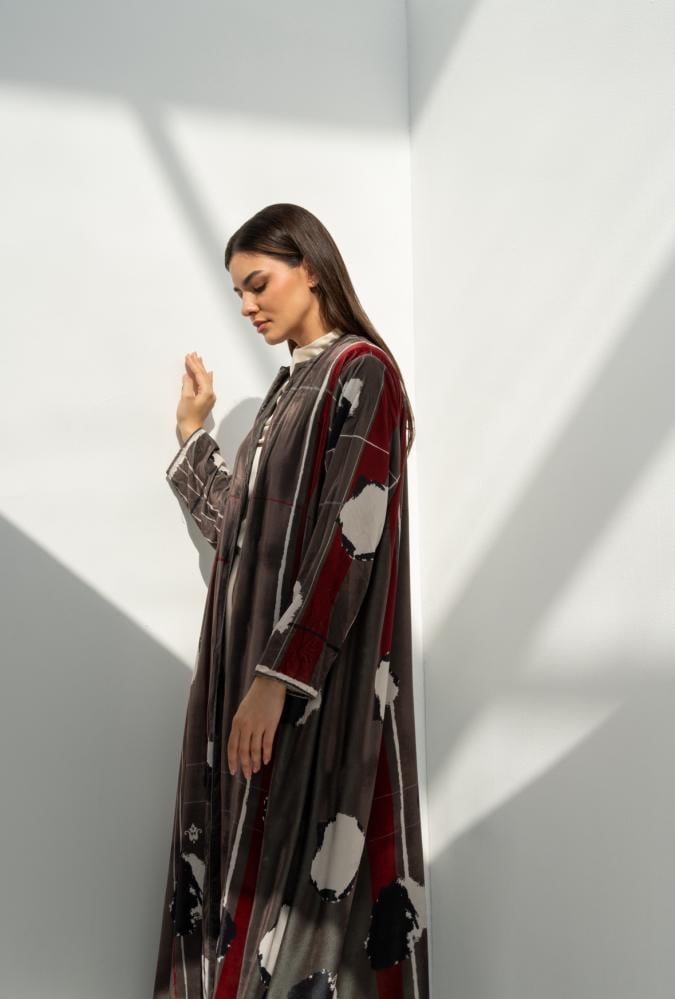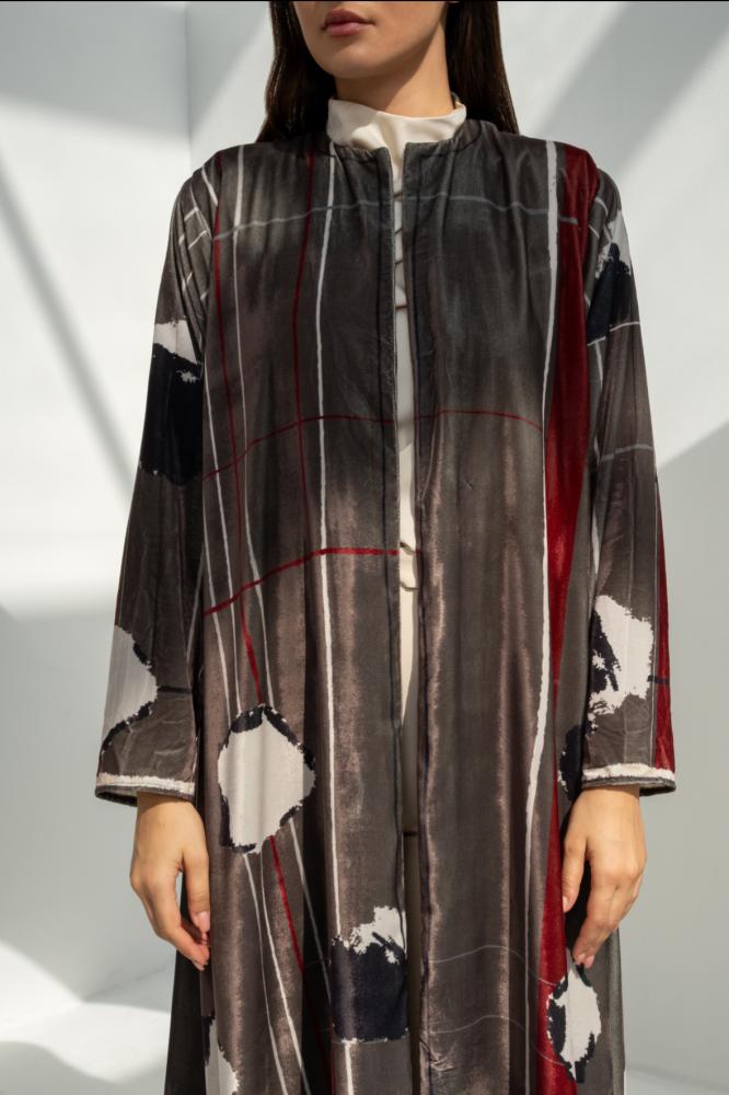 عباية مخمل بنقشة مودرن تمنحك إطلالة مختلفة وراقية في نفس الوقت. خامة مخمل خفيفة بلمعة ناعمة وتصميم انسيابي يبرز جمال الألوان وتداخل الخطوط. قطعة عملية وأنيقة للمرحلة الانتقالية وللطلعات اليومية بإحساس فخم بدون تكلّف.