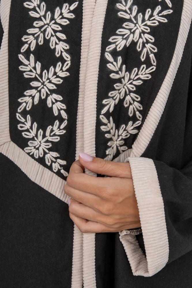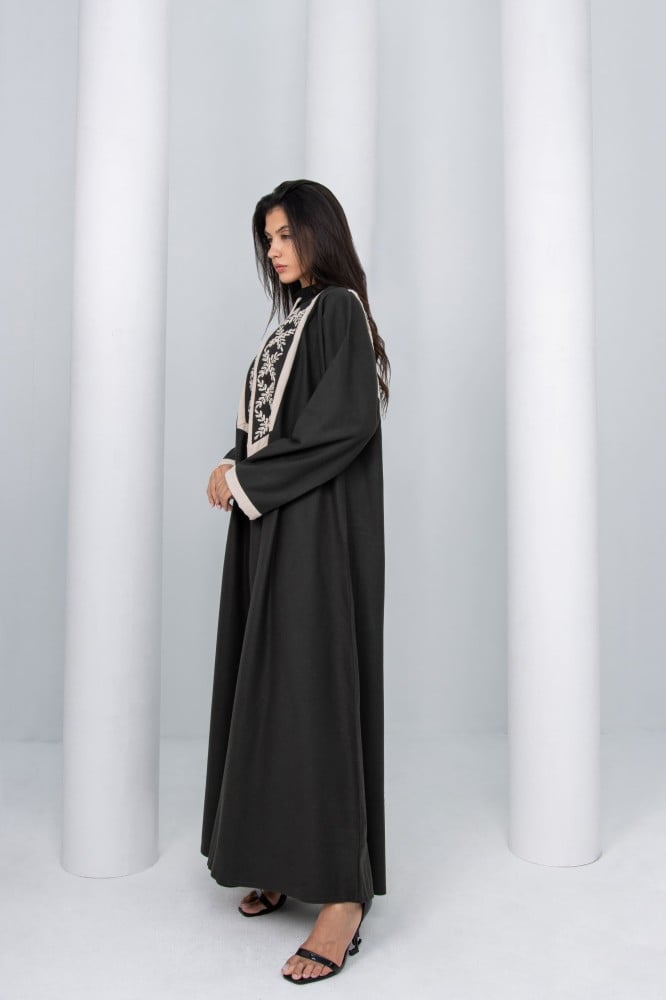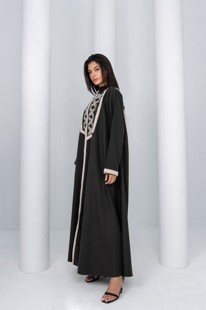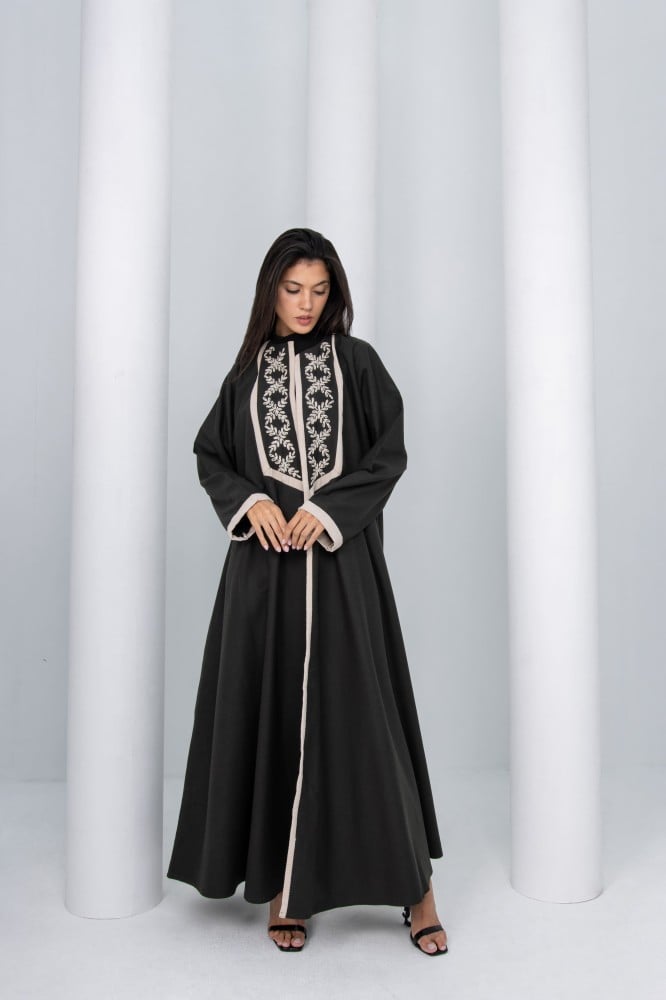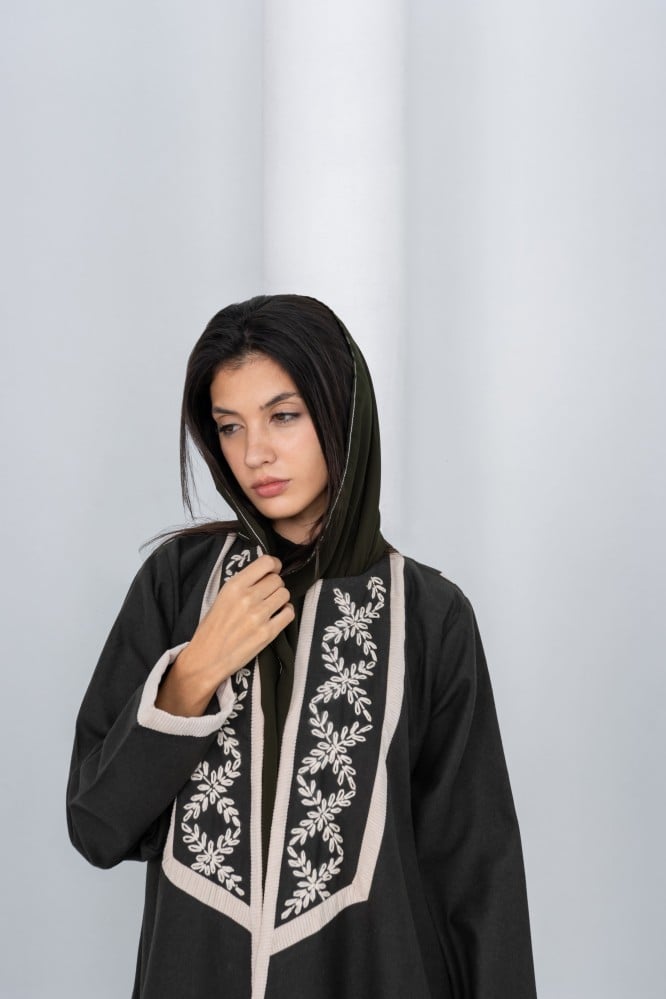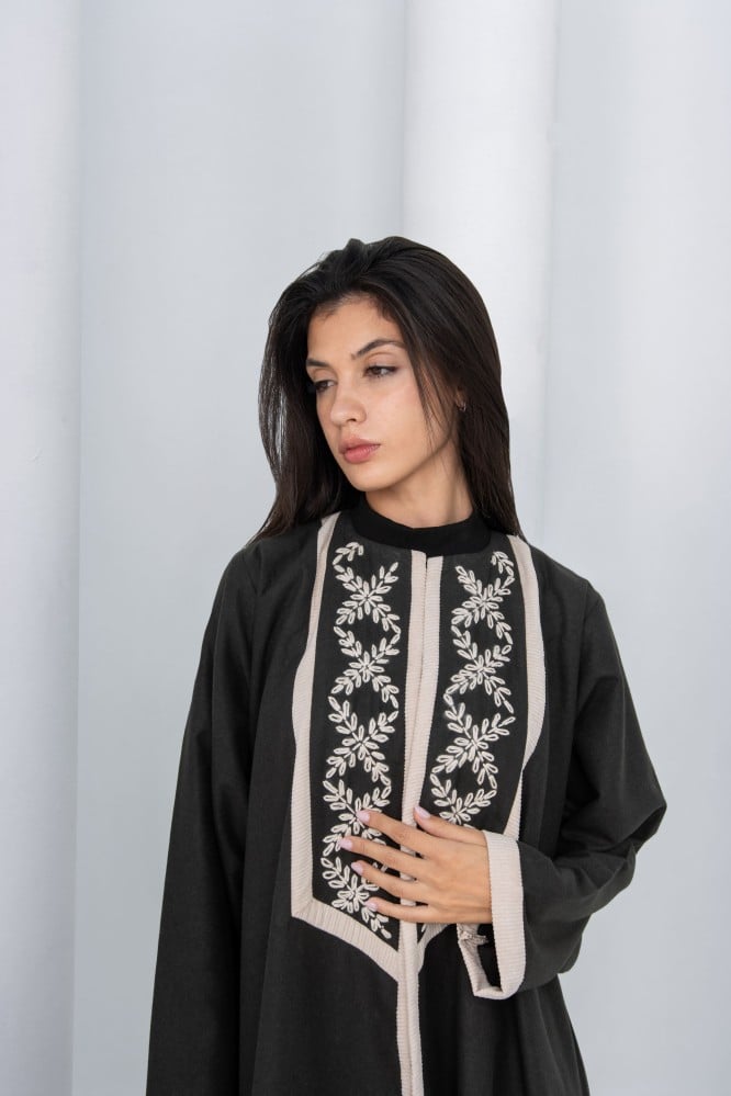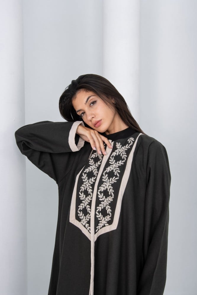 "العباية مصنوعة من جوخ فاخر، وتتميز بتطريزات يدوية دقيقة وفنية، تضفي عليها لمسة فريدة من الجمال.."